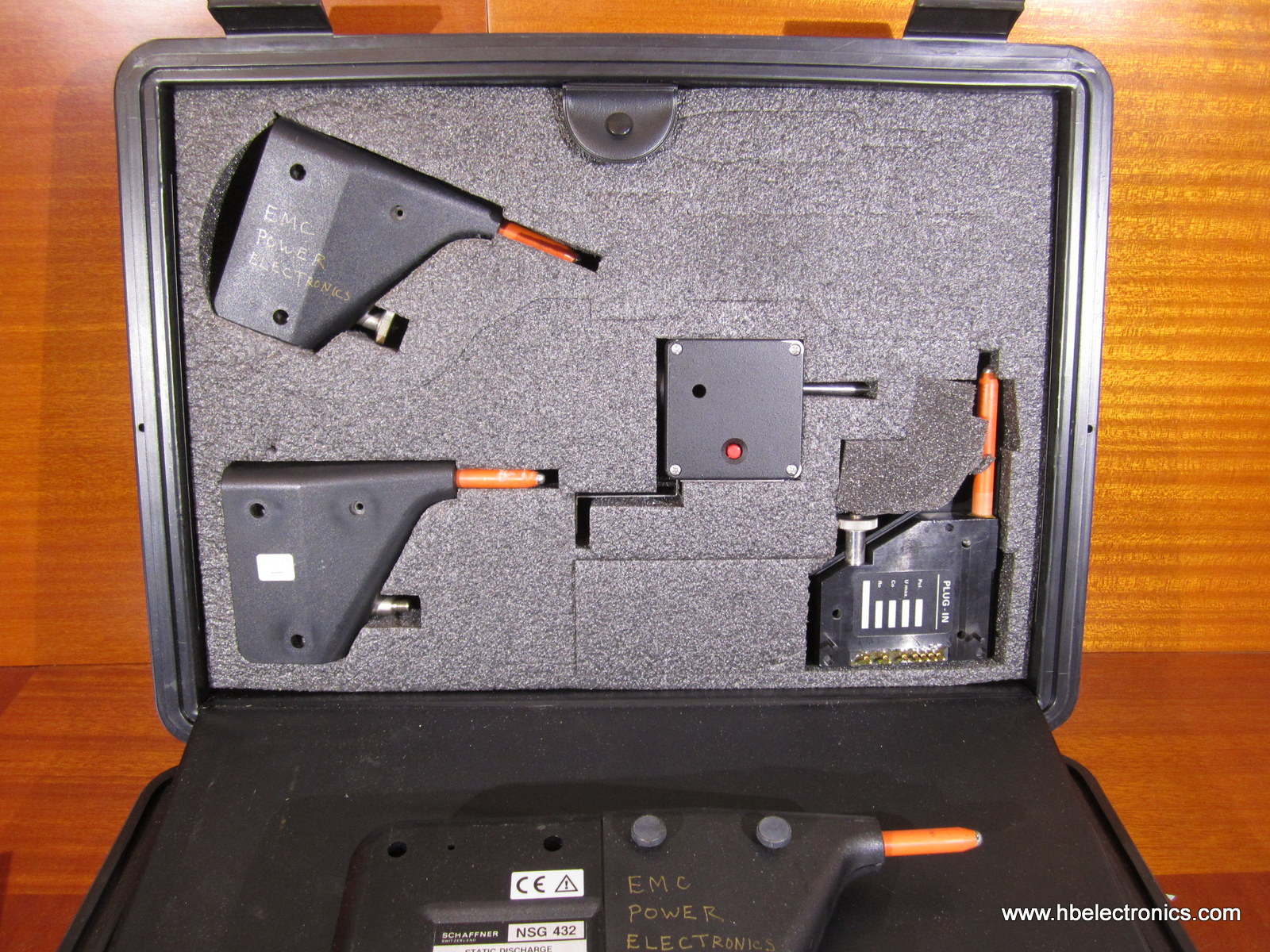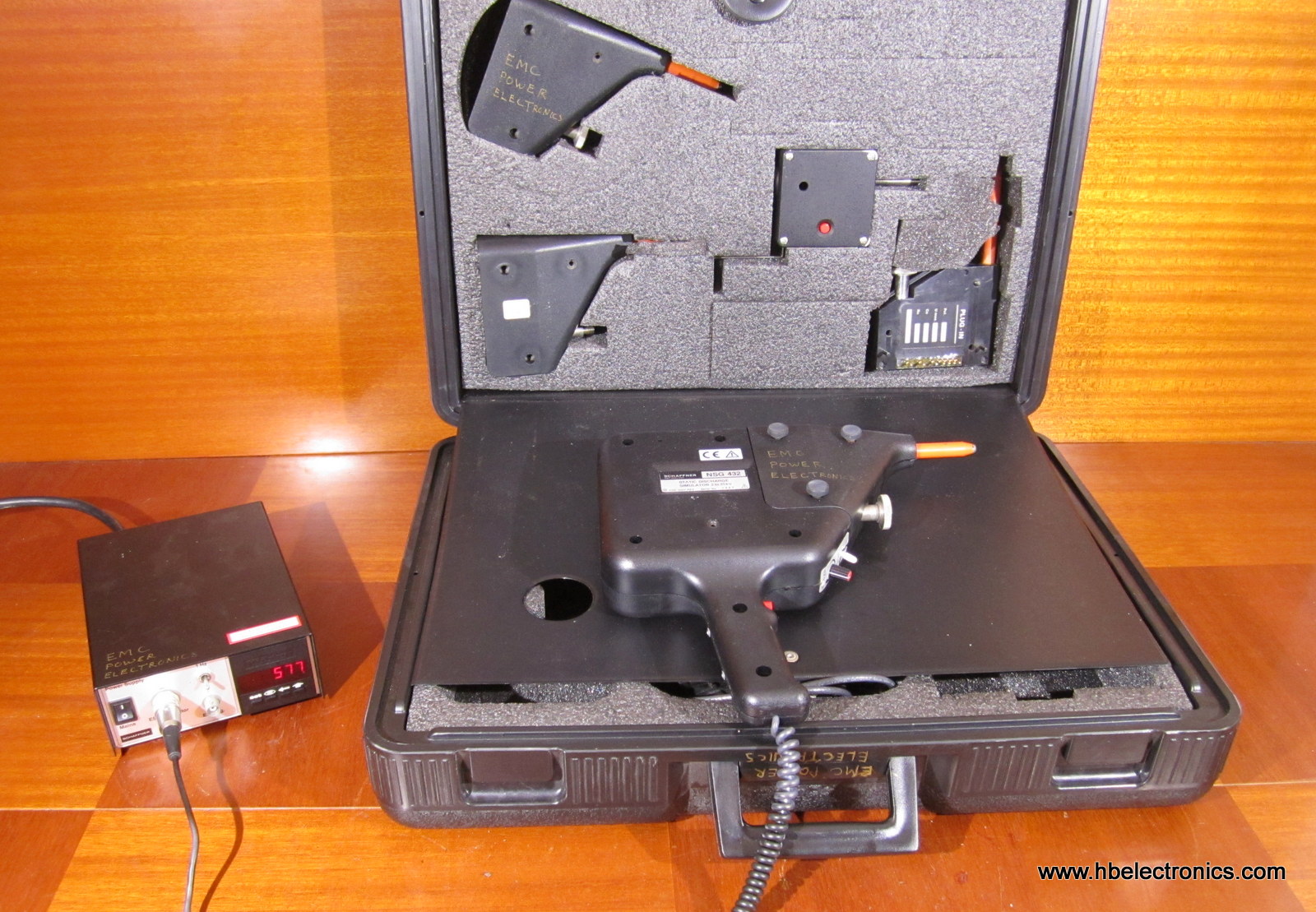 Schaffner NSG432 with 4 plug-ins, accessories and case. The components are working but the handpiece has an issue with the display (please see last picture), and the voltage control is temperamental.